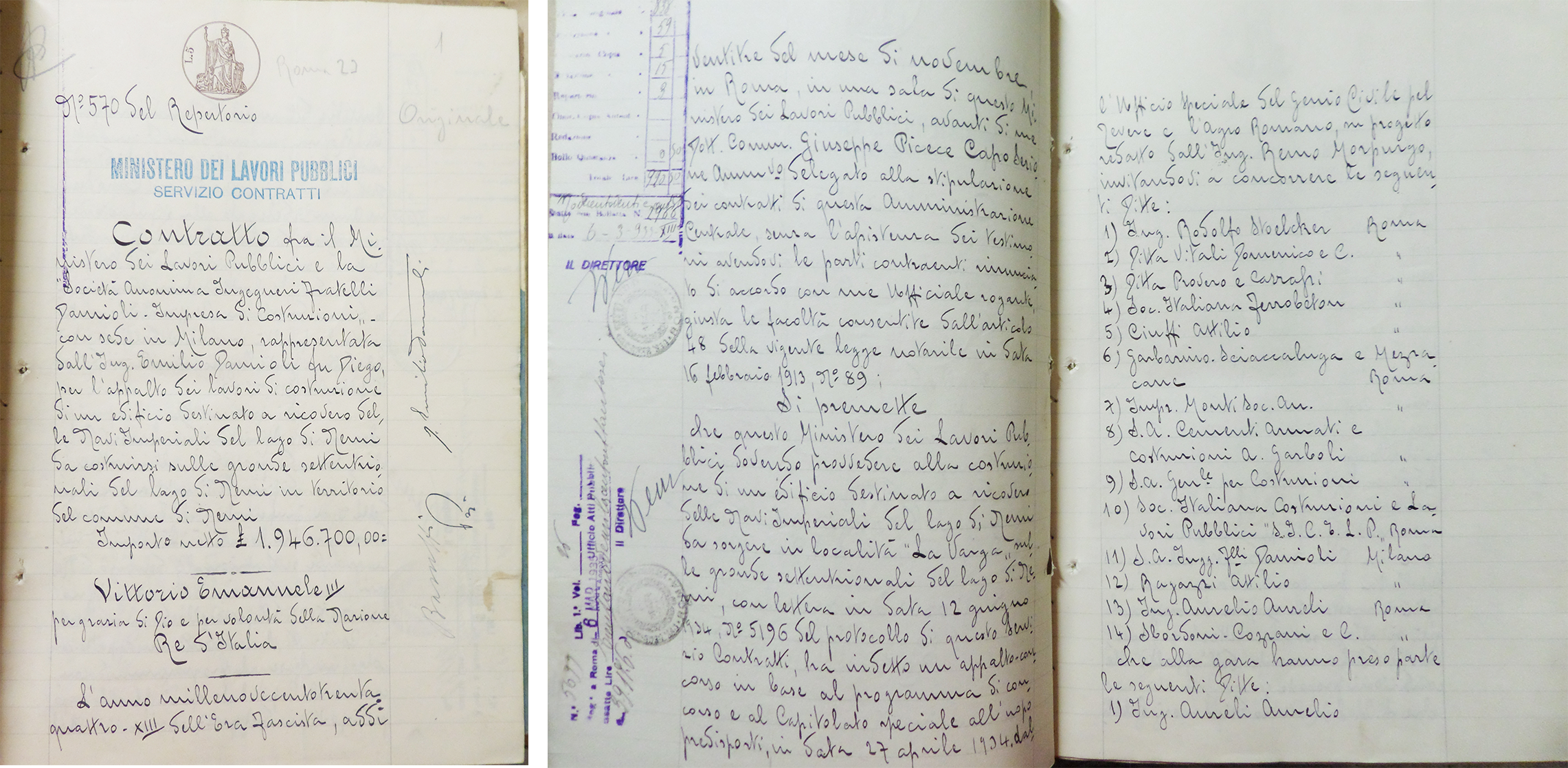 1 | Alcune pagine del contratto fra la Società Fratelli Damioli e il Ministero dei lavori Pubblici per la costruzione delle strutture del Museo delle Navi di Nemi.