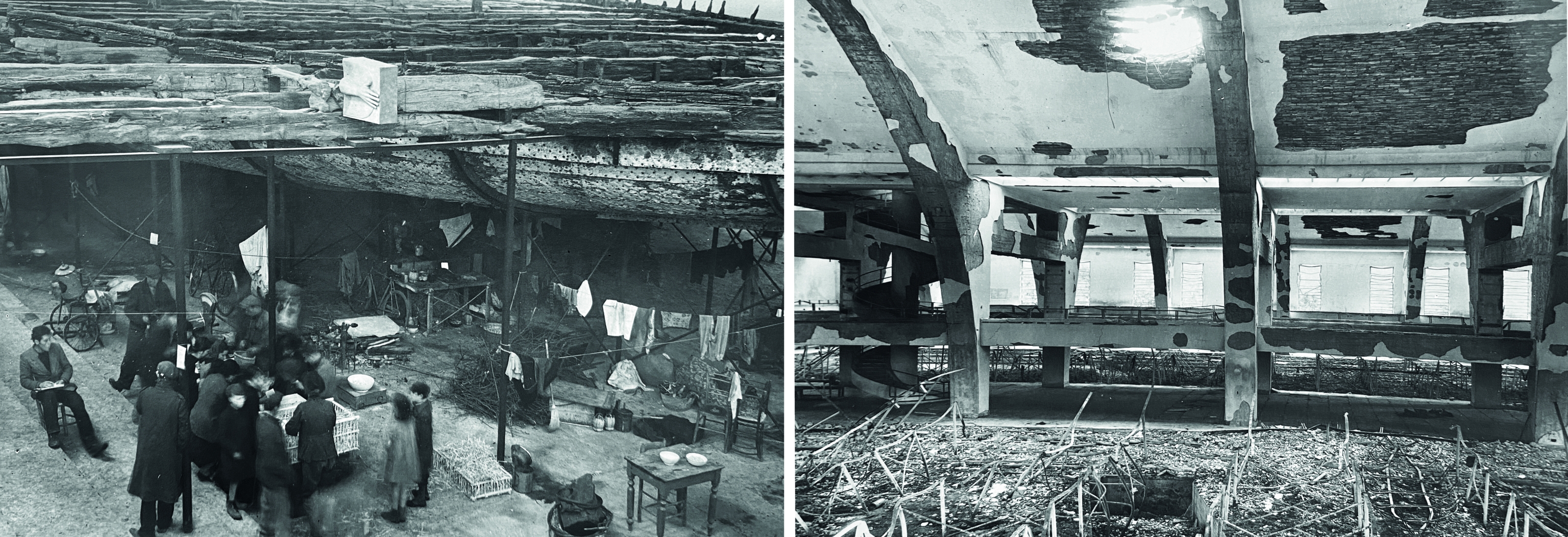 7 | A sinistra, il museo durante la guerra e gli anni dell’abbandono e, a destra, dopo l’incendio del 1944 (SABAP-MET-RM, Fondo Guido Ucelli).