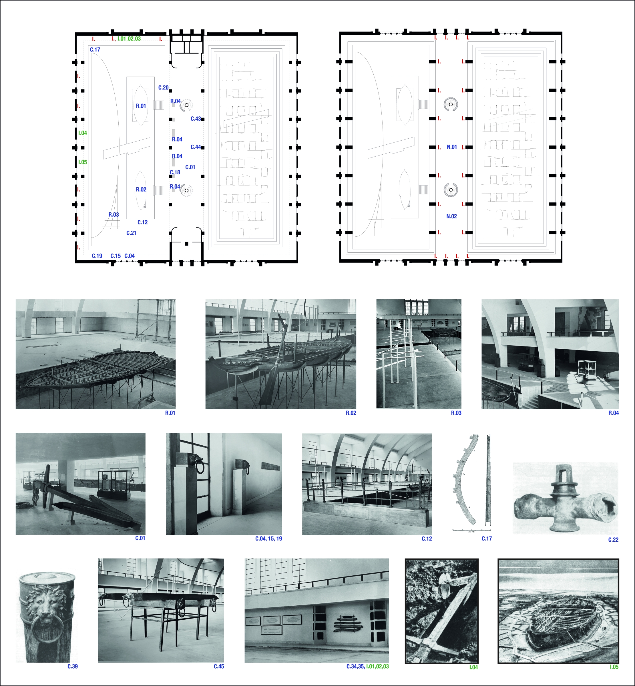 The paper retraces the architectural and museographic evolution of the project of the Museum of Roman Ships in Nemi designed by Vittorio Morpurgo – from its initial conception in 1930s to its most recent transformations following the 1944 fire. It focuses on how the relationship between the building, its landscape and its exhibition design has got weaker over time. Previously unexplored archival sources have allowed for a significant integration of existing literature and provided the basis for a series of new graphic reconstructions – plans, sections, diagrams, and 3D models – produced by the authors with Ilaria Battilocchi and Federica Casata. The article gives a critical overview of the museum’s development between 1940 and 2000, highlighting how each phase reinterpreted the balance between architectural design, material and immaterial acient context, and the museographic aspects. The resulting materials would be intended to inform and, hopefully, support current and future restoration work and exhibition planning.