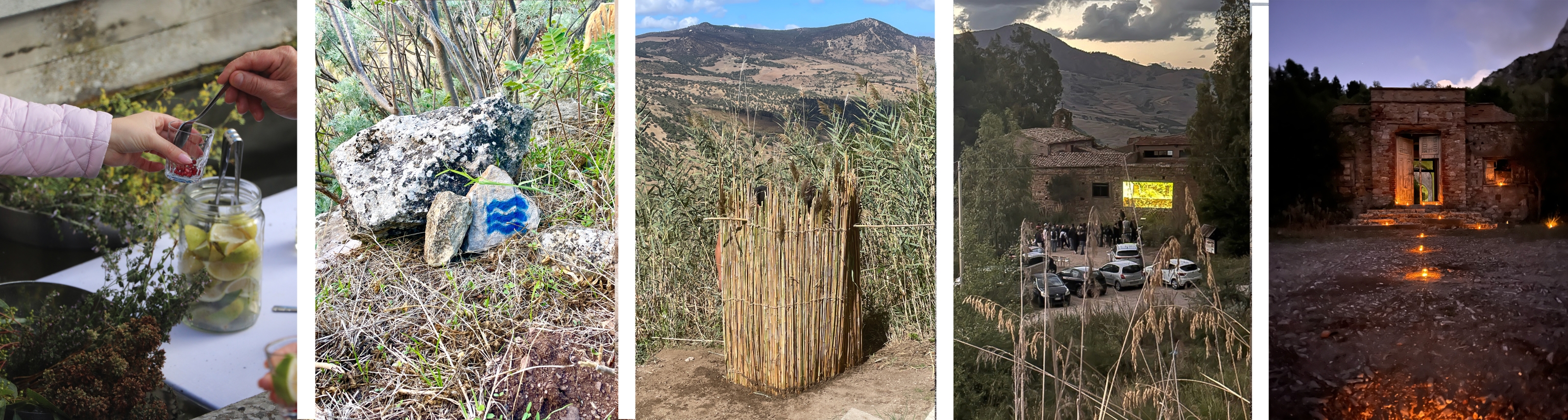 The summer school combined exploration, dialogue, and collective action through five site-specific interventions engaging with selected healing places: an abandoned swimming pool in Petralia Sottana, a fountain in the village, the footpath connecting the village to the spring, la Pozza, and the nineteenth-century thermal establishment. Each project transformed research into situated practice and public encounter, culminating in a two-day performative event called the Blue Path.