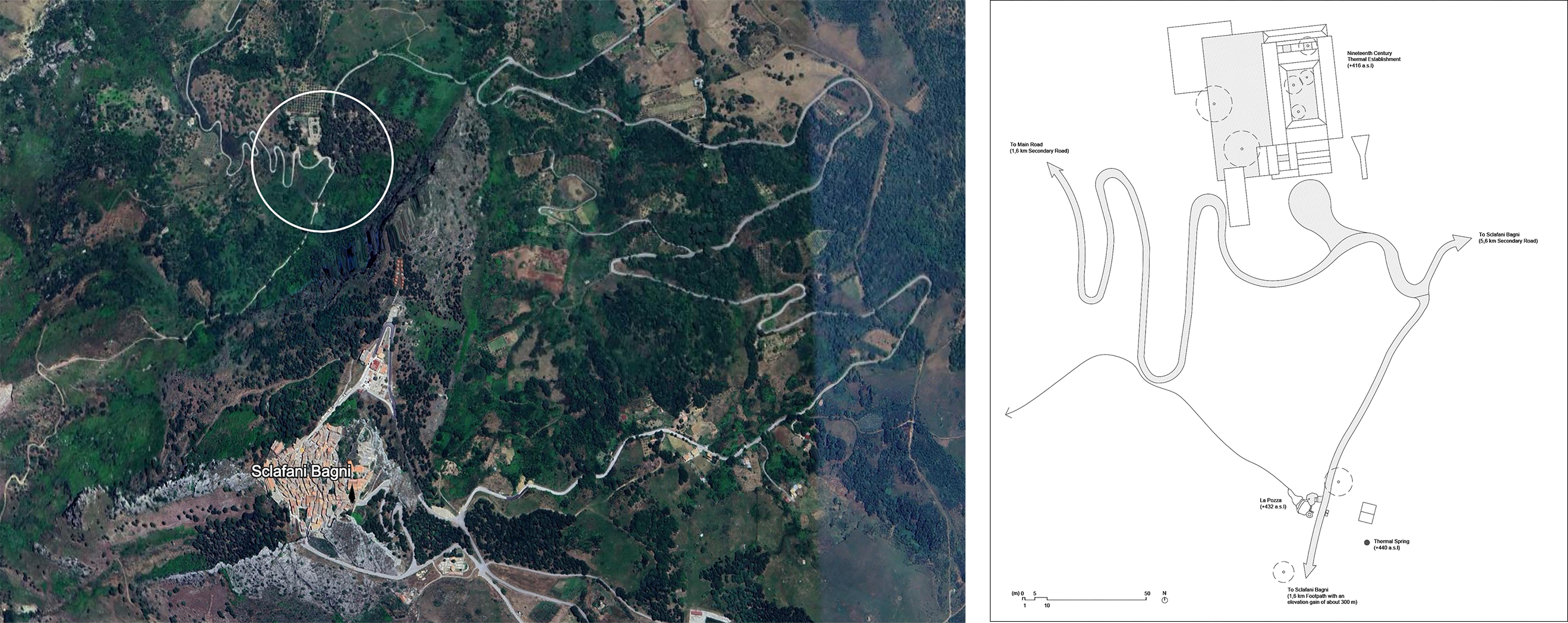 3 | The village of Sclafani Bagni and its thermal area, elaboration from Google Earth by the author, 2025.