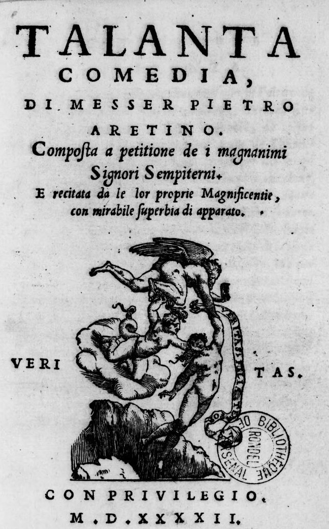 1 | Pietro Aretino, La Talanta, frontespizio della I edizione, 1542, BnF Catalogue Gallica.