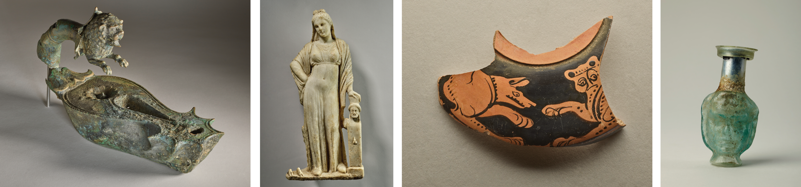 Ancore e anelli per l’ormeggio delle imbarcazioni restituiscono la vocazione commerciale di Gaza, che dopo l’assedio e la distruzione per mano di Alessandro Magno (332 a.C.) mantiene anche durante il regno dei Lagidi e dei Seleucidi il controllo delle coste. Diverse tipologie di anfore e frammenti di ceramica attica sono indicativi di floridi scambi. Grazie alla padronanza delle tecniche di irrigazione e all’adattamento del terreno sabbioso per la coltivazione della vite, Gaza si afferma inoltre come luogo di produzione di vino e di giare, esportate nei principali porti del Mediterraneo (Alessandria d’Egitto, Beirut, Marsiglia) e persino della Penisola Arabica e dell’Oceano Indiano. Una figurina di terracotta datata all’Età del Ferro che ritrae una danzatrice con tamburello (l’iconografia, largamente attestata in Siria e Palestina, è connessa al culto della fecondità) e una piccola scultura ellenistica in marmo da identificarsi con Afrodite (o Ecate) in compagnia del dio Pan bambino, entrambe senza contesto di provenienza, sono indicative dei rinvenimenti al di fuori di scavi archeologici. La statua della dea è stata recuperata dai pescatori nelle acque antistanti Blakhiya e acquistata da Jawdat Khoudari con l’obiettivo di sottrarla al traffico illecito di beni culturali.