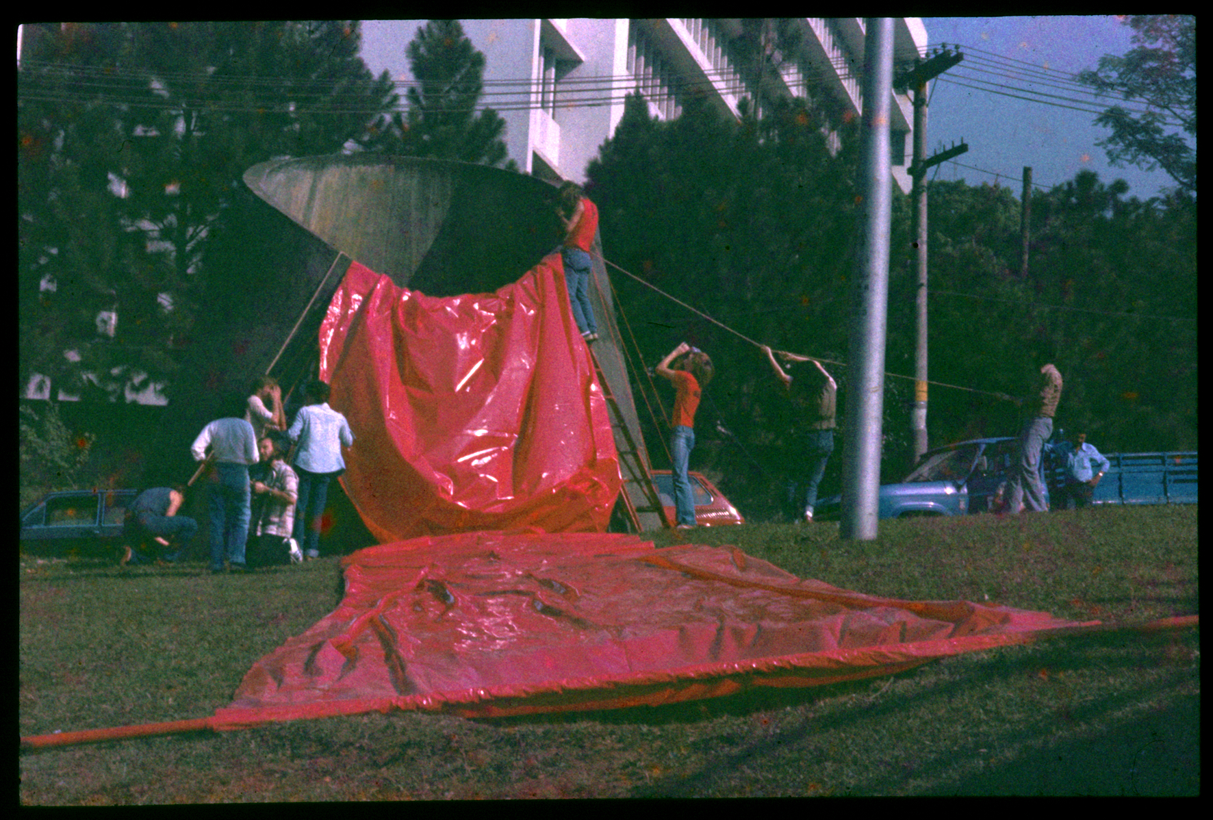 2 | 3NÓS3, 27.4/3, urban intervention with red polyethylene bands, Avenida 23 de Maio, São Paulo 1982.