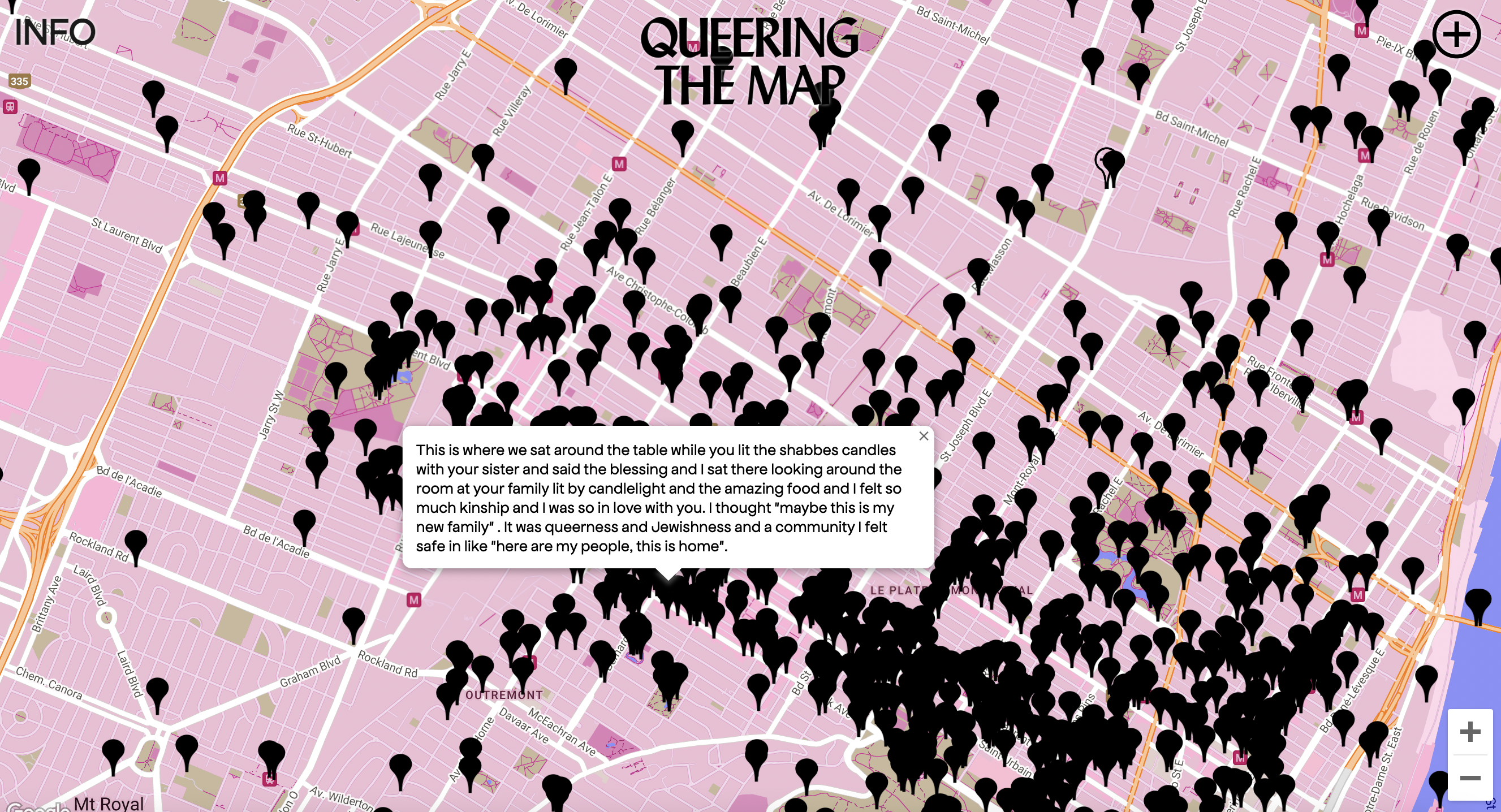 1 | Lucas LaRochelle, Queering the Map, mappa digitale, screenshot, 2017–2026.
