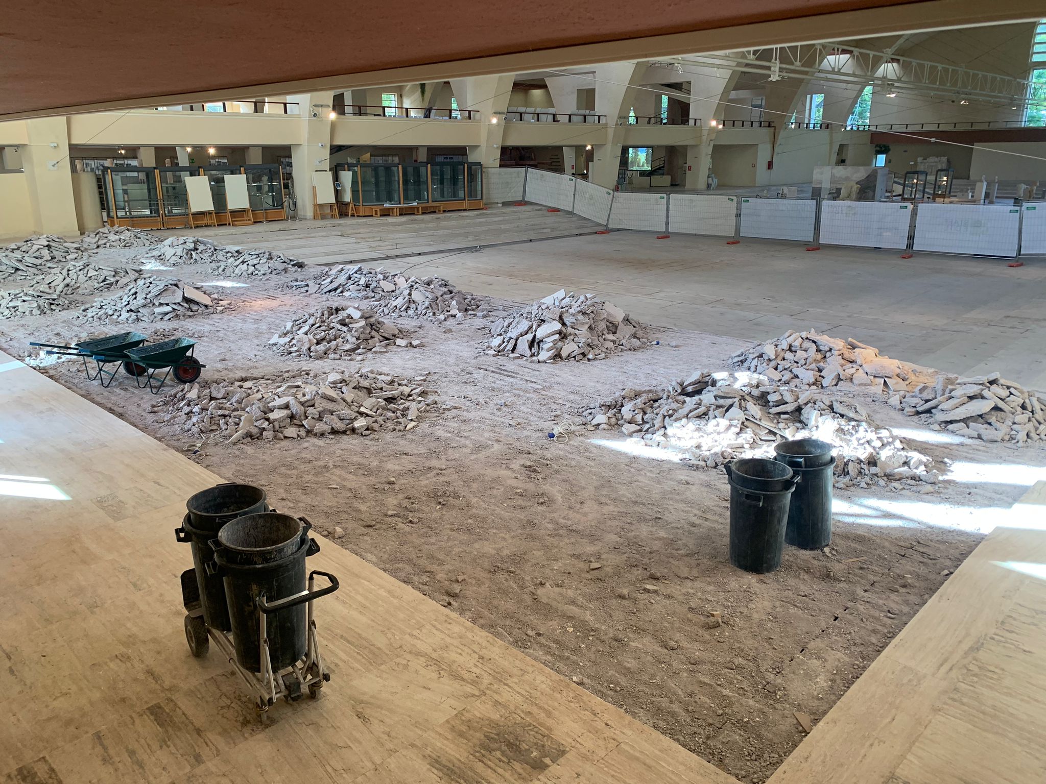 Entrare oggi nel museo vuol dire fare ingresso all’interno di un cantiere in piena attività, dove diverse squadre di lavoro operano simultaneamente su vari interventi collegati: dal restauro delle coperture a quello delle sale espositive, dal rinnovo degli apparati impiantistici a quello delle dotazioni collegate agli spazi di accoglienza. Lo stato attuale dell’attività in corso offre perciò un quadro significativo della complessità gestionale di un bene pubblico così ampio come il Museo delle Navi romane di Nemi.