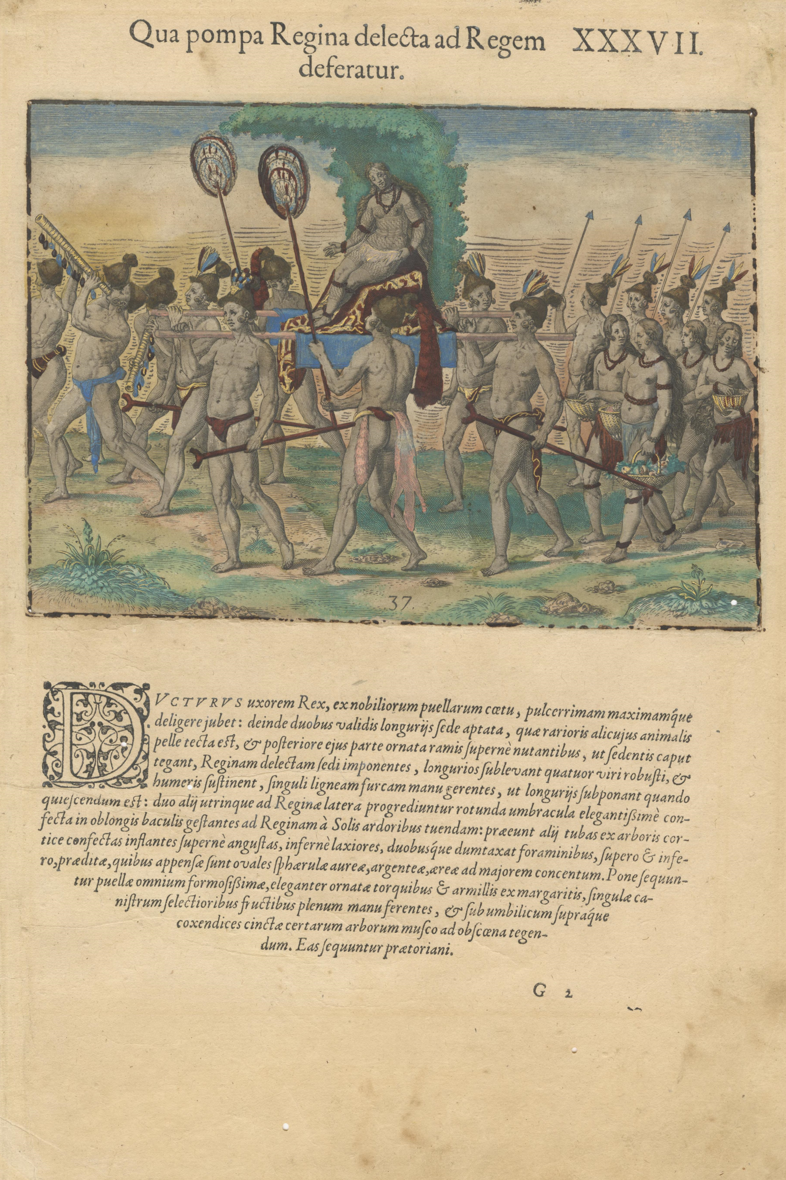 Según la crónica escrita por la pluma de Jakob Frischlin, la “Reina de América”, envuelta en ricas plumas de papagayo, abrió el torneo con las siguientes palabras: