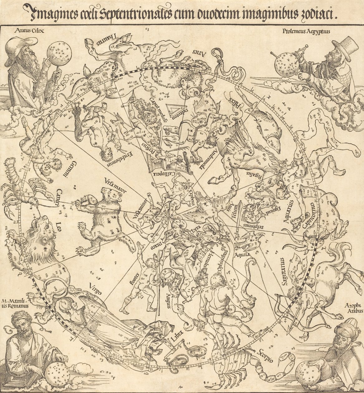 Albrecht Dürer, Imagines coeli septentrionales cum duodecim imaginibus zodiaci, engraving, 1515.