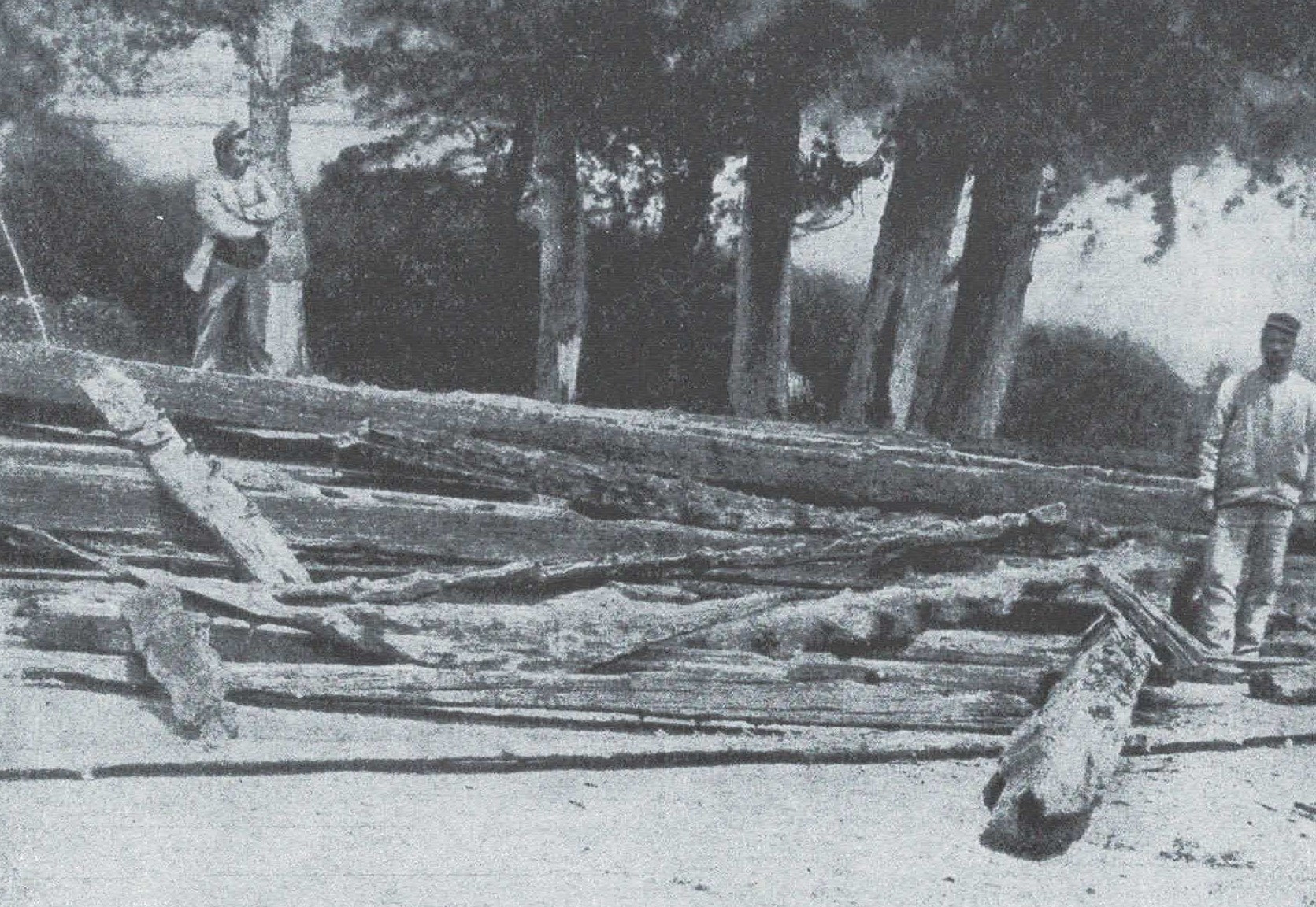 10 | Fasciame delle due navi recuperato dal lago, abbandonato poi sulle rive e andato distrutto dagli agenti atmosferici, 1895 (da: Ucelli [1950] 1996, 18, fig. 12).
