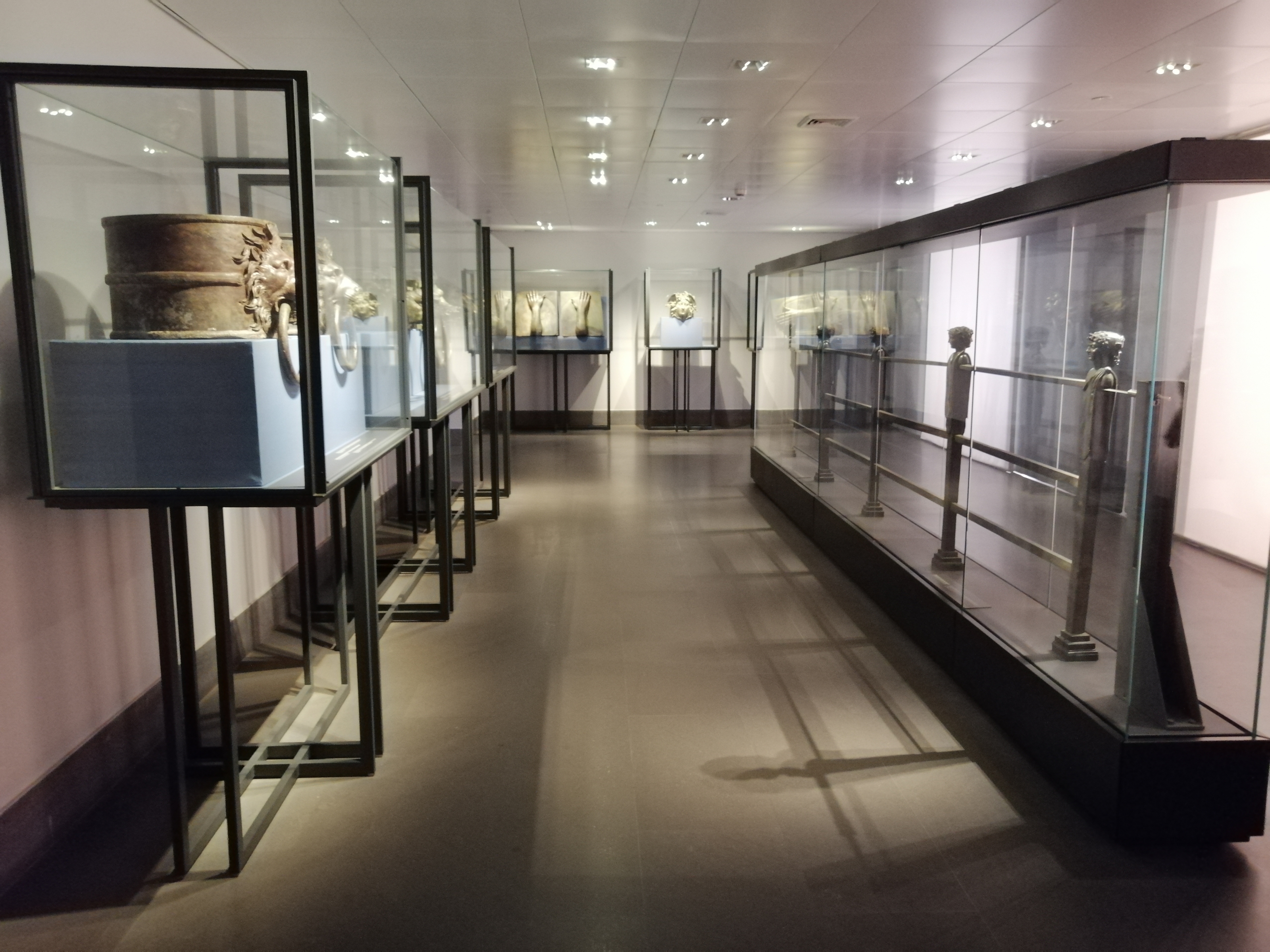 12 |Allestimento attuale nella sala X del Museo Nazionale Romano, dove è presente anche la ricostruzione del parapetto della seconda nave (Su concessione del Ministero della Cultura - Museo Nazionale Romano, foto di Eva Dal Bello, marzo 2024).