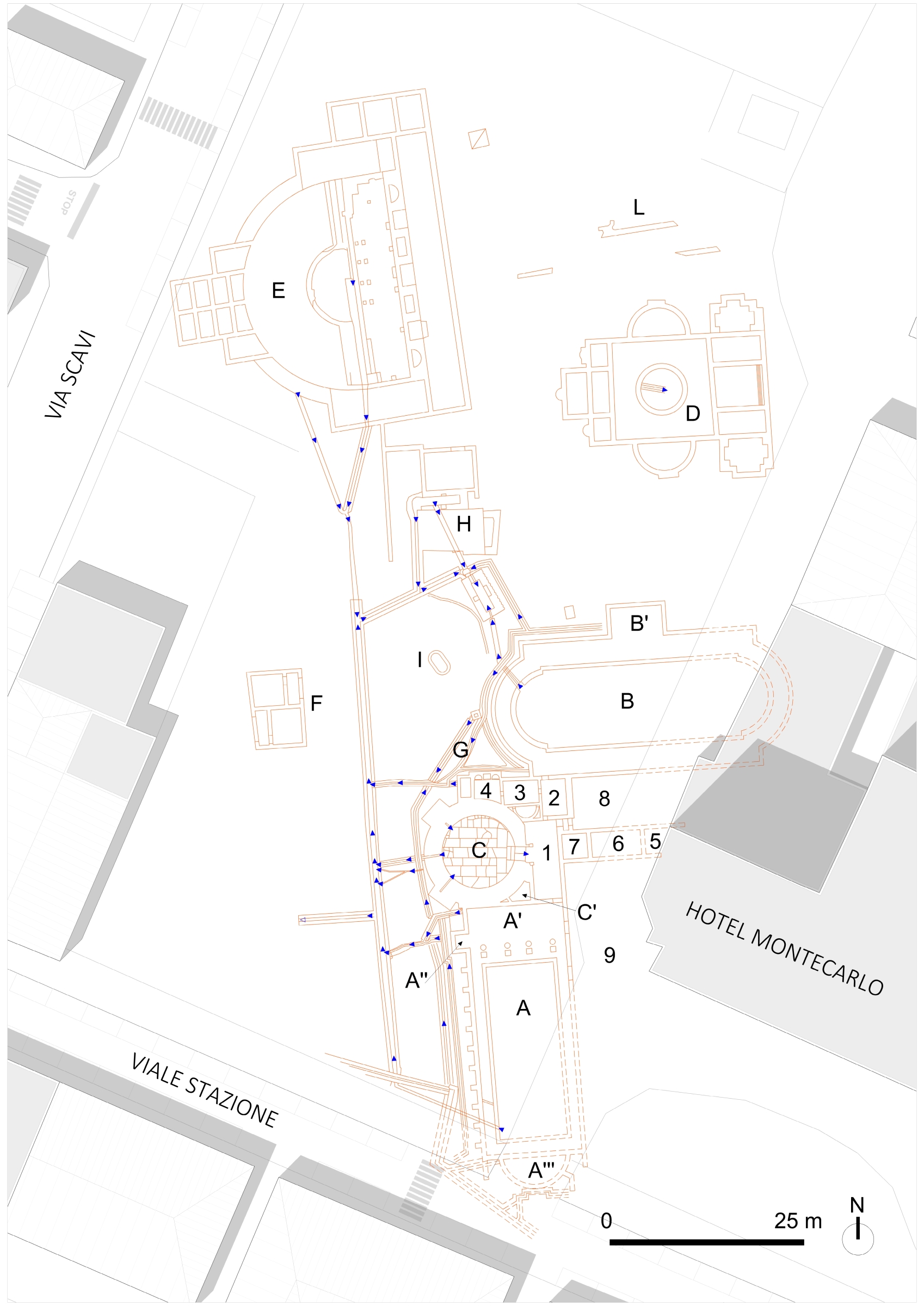 9 | Plan of the Roman healing context in Via Scavi at Montegrotto Terme (Bassani, De Venanzi 2024, fig. 3).