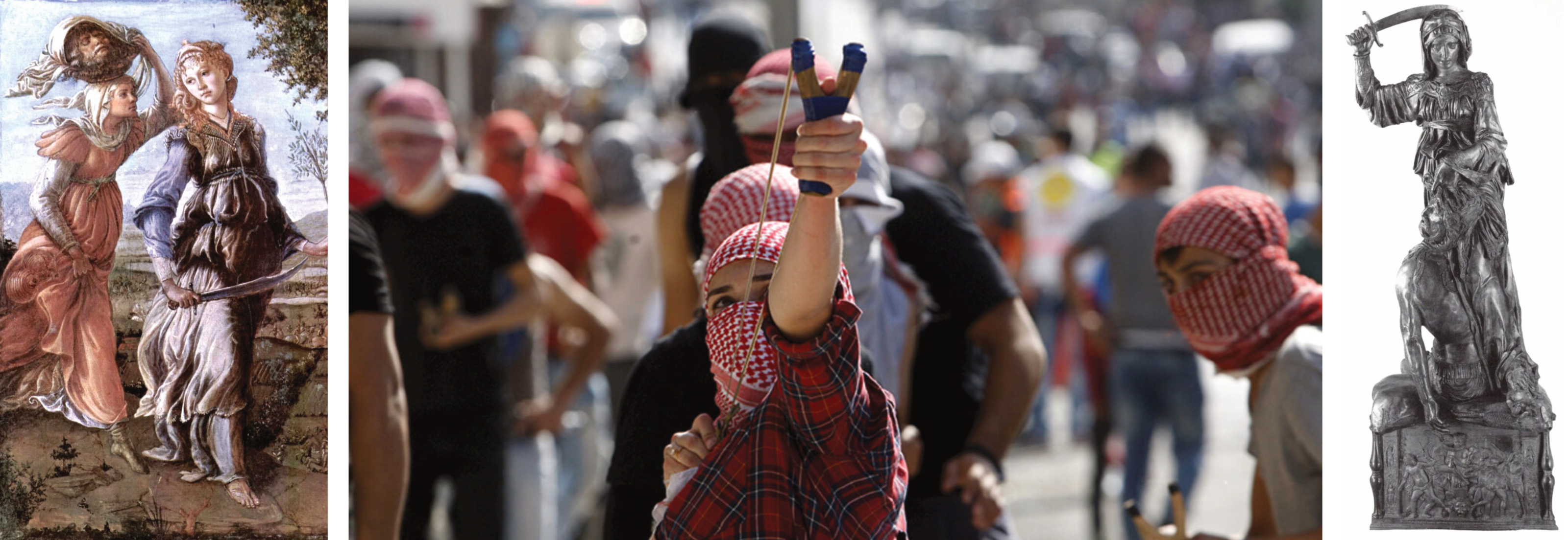 La Ninfa che riappare a manifestare oggi nelle strade e nei cortei pro Palestina, non è una soldatessa, è una menade. Può impugnare armi, ma non sono armi proprie. Non indossa una divisa, non appartiene a un apparato, non dispone di un arsenale: è un corpo attraversato da una pulsione capace di farsi gesto. La Ninfa contemporanea si iscrive in questa genealogia come figura di una violenza situata, che usa non già armi di dotazione, ma un’armatura d’occasione. Come Giuditta, non possiede un’arma propria: la raccoglie. La spada non è sua – come non lo sono, nelle piazze delle manifestazioni dell’autunno-inverno 2025, il sanpietrino, la fionda, l’estintore, il megafono. Sono armi improprie: strumenti contingenti, situati, offerti dal contesto. E le armi improprie non sono né le armi in dotazione alle polizie del potere, né le armi progettualmente mortifere dei terroristi di ogni stagione: sono armi di tutti, che tutti possono prendere e impugnare. La pistola è un’arma seriale, conservabile, astratta dal contesto e deputata a una funzione progettualmente e simbolicamente assassina; il sanpietrino no. Esiste solo nella situazione che lo attiva, prende il segno della strada da cui proviene, si consuma nel gesto che lo lancia. La sua forza non risiede nella capacità distruttiva, ma nella sua esposizione: rende visibile una rabbia indispensabile, popolare, che brucia dal basso e che non può essere delegata. Anche il megafono, in questo senso, è al tempo stesso arma letteralmente impropria e segno distintivo. Convoca senza uccidere, amplifica l’urlo menadico, lo rende contagioso. La Ninfa non parla a nome di un’istituzione, ma alza una voce che eccede l’ordine del discorso. Il riferimento alla tragedia greca è inevitabile. Le menadi non vincono con armi proprie, ma con il tirso: materia vegetale, rituale, strumentalmente improvvisata. In Ecuba di Euripide, la violenza materna che fa a pezzi il figlio del nemico riecheggia i versi delle Baccanti: stessa lingua, stessa furia. La Ninfa compie così la sua giustizia.